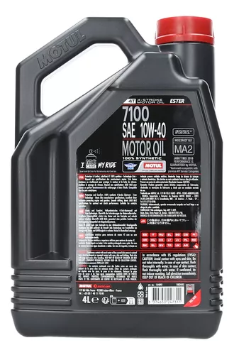 Motos ruteras, trails, motos todo terreno, enduro, trial… equipos de motores 4 tiempos con cajas de velocidades integradas o no y embrague bañado en aceite o en seco, motores diseñados para utilizar lubricantes de baja viscosidad, que responda a las normas anti-contaminantes Euro 2 o Euro 3, equipadas con sistemas de pos tratamiento de gases de escape: catalizadores, inyección de aire en el escape… Recomendado particularmente para SUZUKI, KAWASAKI, YAMAHA, que recomienden aceite de grado SAE 10W-40 para algunos de sus modelos. Otras aplicaciones: motos sin post catalizadores, scooters, quads, ciclomotores.